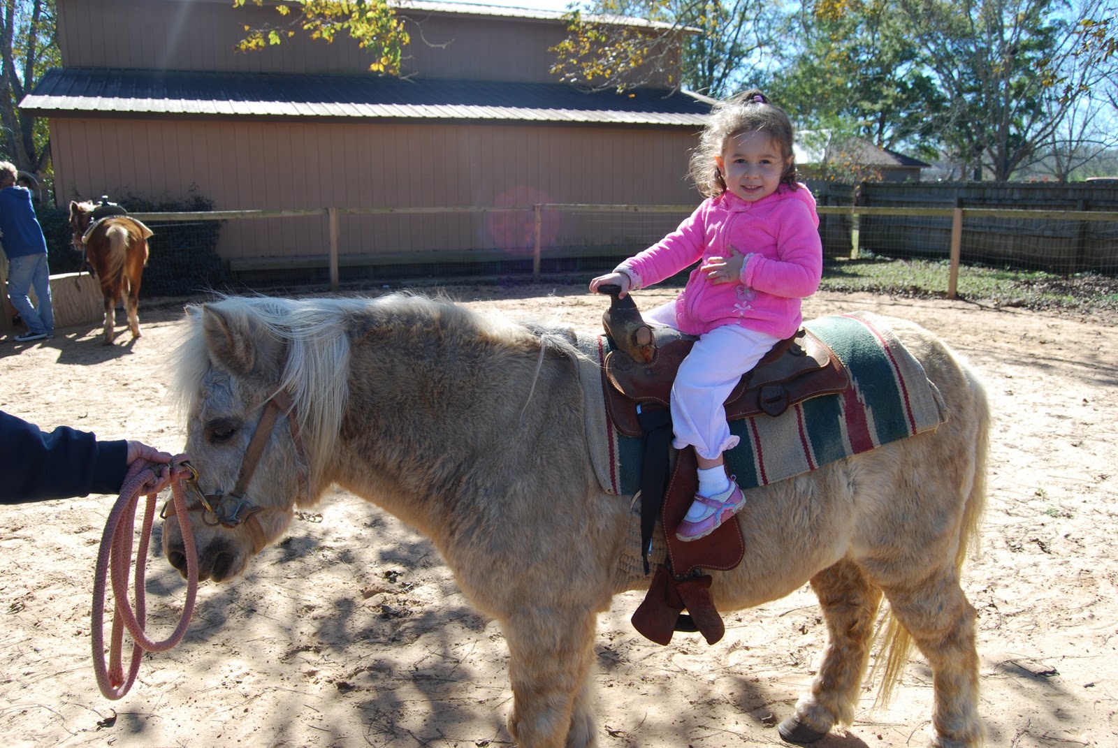 And then it was time for the pony ride. Goodness, you could see the battle she was going through right on her face. She was so scared but wanted to get on that pony so bad. She told me she wanted to ride, but asked me if I would hold her hand. This is how the ride started: