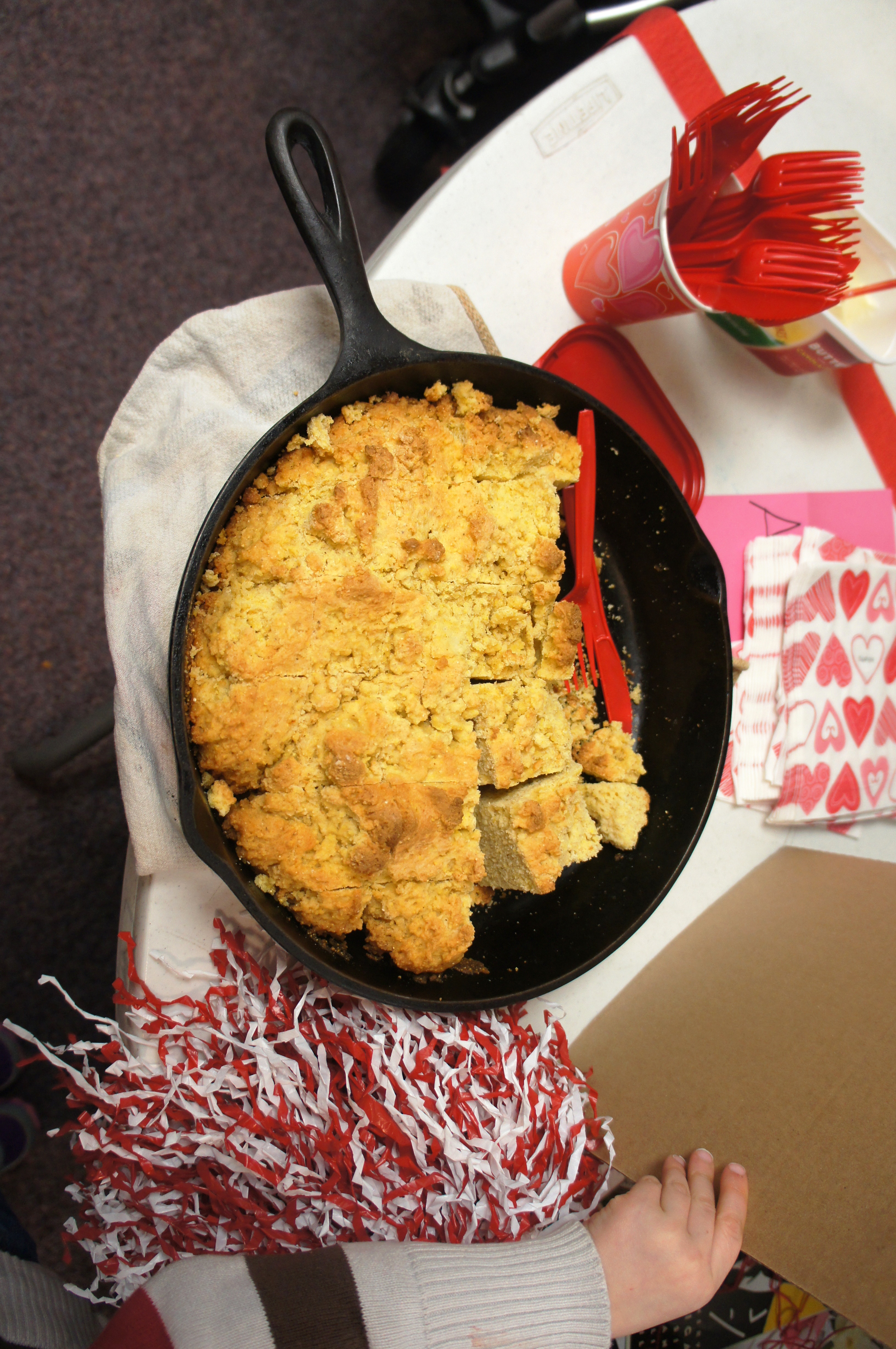 Our new tradition is to have a family “Valentine’s Day” dinner. It’s always way too expensive to go out on Valentine’s Day, and impossible to find a sitter, so we do a family thing, and then hubby and I go out for a Valentine’s celebration later on. The girls chose the menu this year and chose a “breakfast for dinner” meal. We had scrambled egg muffins (just scrambled eggs with a bunch of stuff thrown in and baked in a muffin pan), french toast, and strawberries. They loved it.