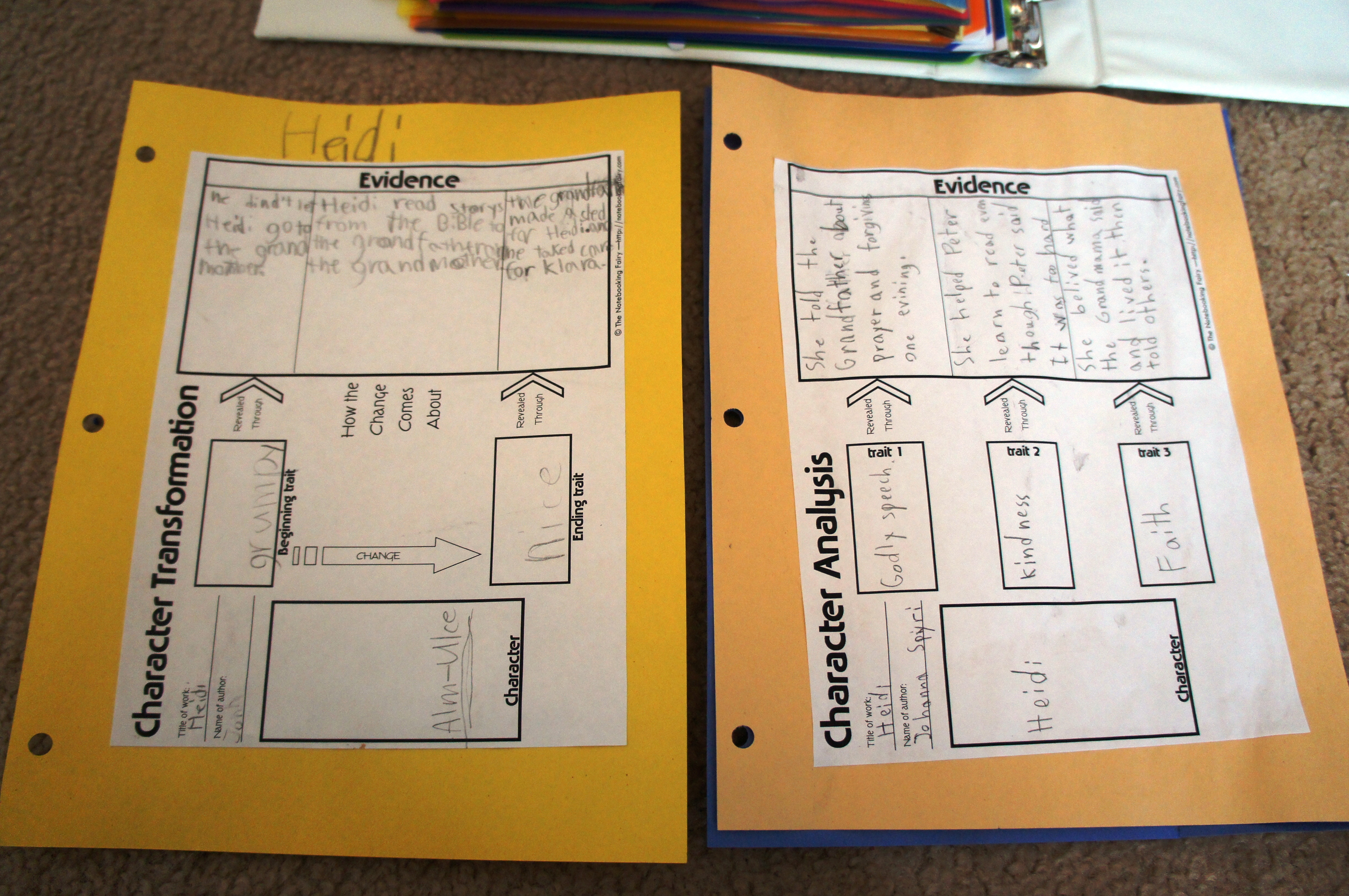 So, we picked out a few character traits for Heidi – joy, encouragement, faith, compassion, etc. and then we were able to look at a few Bible verses to see how the Bible “defined” those traits and if we agreed that Heidi actually had that trait. Then we listed “evidence” from the story on the notebooking page.