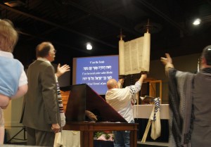 Then I remembered, back eons ago, when I used to babysit and I once babysat for the rabbi of a Messianic congregation in New York. (Messianic refers to Jews who believe that Jesus is the Messiah, but worship with their Jewish customs and traditions. Somebody correct me if I’ve explained that incorrectly.) And I thought, these folks might be less likely to be offended by a former-Southern Baptist gal bringing her kids in to see a scroll as part of a home school project.