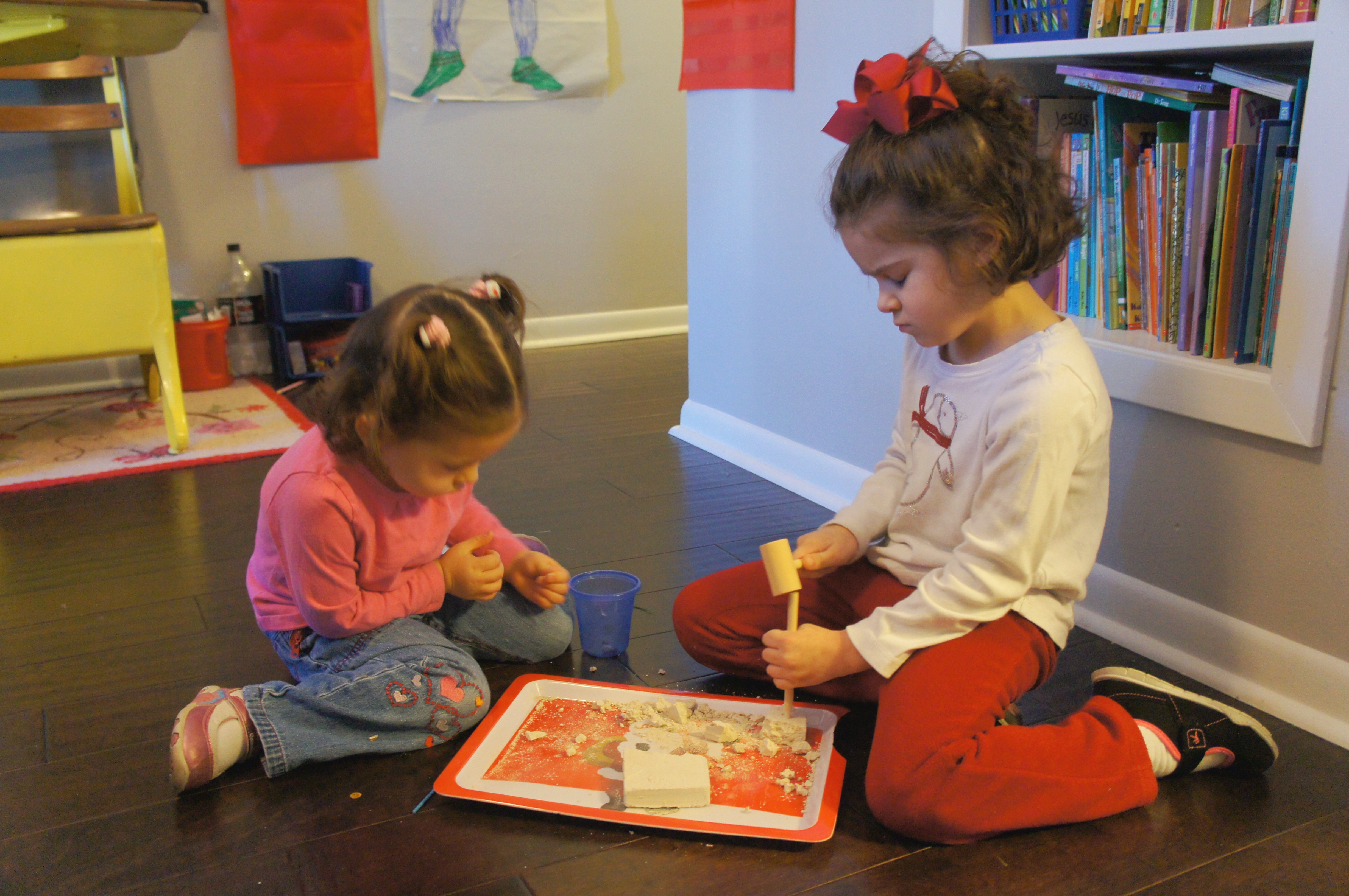 (Side note just so you can get that joke: My mother – super-analytical-brained CPA. Me – artsy-creative-thinker, and DEFINITELY NOT a CPA, who still to this day does her checkbook on the computer so she doesn’t have to add or subtract. My mother and I and doing math homework growing up??? Quite a funny picture. I was more interested in the story behind the math problem, asking why Jenny and John wanted to put their apples together in one basket, and my mother would just say, “Just answer the problem already!” Such irony, I not only homeschool but I’m now the one trying to teach someone math! Oh well, guess you had to be there.)